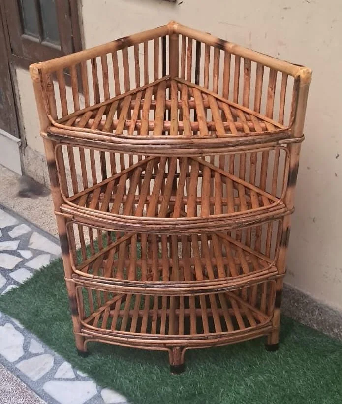 Bamboo Cane Corner Rack for Living Room – Multipurpose Rack, Bookshelf, Home Decoration (4 Shelf)