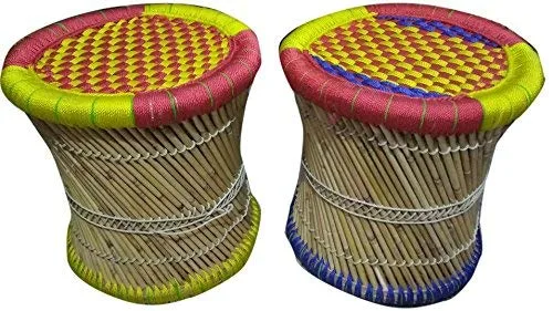 Bamboo Stool for Home, Garden, Living Room Furniture, Café, Restaurant, Balcony Décor | Indoor Outdoor Muddha Style Seating (pack of 2)