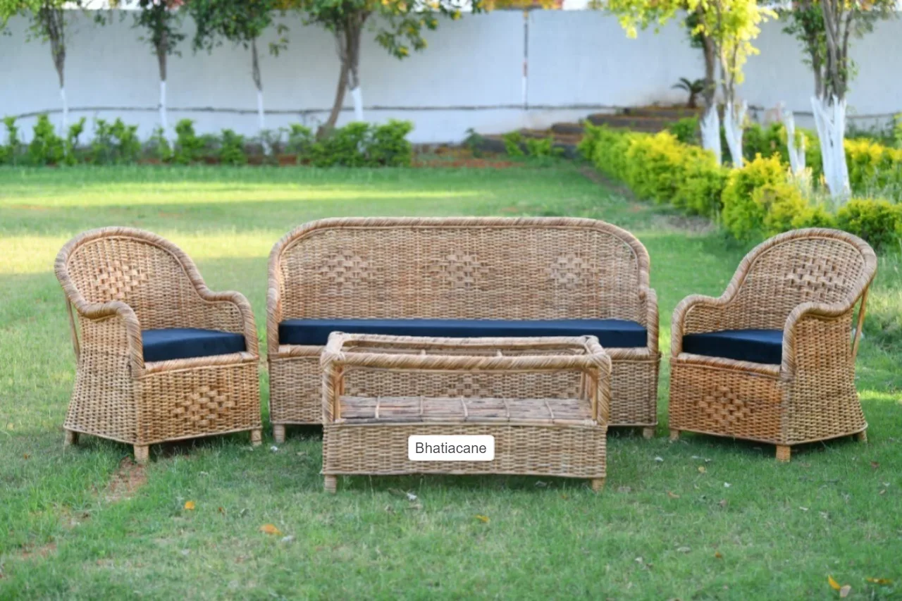 Cane Sofa Set with Table – Furniture for Home
