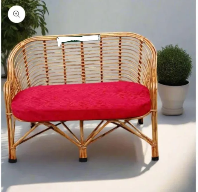 Cane Two Seater Sofa for Home, Living Room, Office with Cushion (Henna)